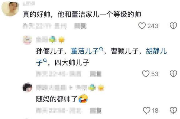 除了等等和顶顶,曹颖的儿子王子和胡静的儿子牛魔王也是被网友夸得很帅的星二代。有人直言他们是娱乐圈的四大帅儿子,认为只有他们这种星二代才能进娱乐圈。